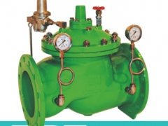 进口压力P1通过导管和针阀进入主阀的控制室,并建立向下的压力P3。出口压力P2也通过导管作用在导阀的膜片(或活塞)下并与导阀的调节弹簧相对抗。当下游压力超过导阀弹簧设定值时,导阀关闭,控制室内水不能排出,可变压力P3达到最大值,则主阀瓣压紧阀座,使减压阀关闭。一旦下游压力P2降到导阀弹簧设定值时。导阀开启,控制室内的压力水将通过导阀、球阀排泄到下游。由于针阀开度小,并且入口导管比出口导管直径小,所以排泄速度大于入口压力补水速度,由此控制室内的压力P3减小。一直作用在主阀瓣下面的入口压力P1将主阀瓣托起,从而打开减压阀。在移定调节状态,排泄流量等于补水流量,主阀口开度不变,下游压力稳定。(这是膜片式的工作原理,活塞式相同)。